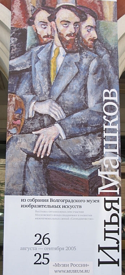 Волгоградцы решили показать Илью Машкова. Имя это громкое. Еще бы, ведь Машков был одним из тех дерзких новаторов, кто принадлежал к художественному объединению "Бубновый валет". В экспозиции несколько превосходных картин Машкова того времени. Однако подавляющее большинство - более поздних, когда художник изменился до неузнаваемости. Не случайно же, устроители выставки хотели назвать ее "Другой Машков", но передумали. Чтобы понять, насколько и почему другой, недостаточно прочитать эти слова на афише - надо сходить в галерею и увидеть все собственными глазами. Уверяю, это весьма поучительное зрелище. Некоторые вещи вызывают культурный шок. И трудно поверить, что написаны они той же рукой, которая создала к 1917 году "Портрет художника Мильмана" (его еще называют "четырехголовым портретом"). Один и тот же человек изображен сразу в четырех ракурсах. Изображение наслаивается на другое, как при наложении нескольких кинокадров. Это очень загадочная картина, говорит куратор проекта "Золотая карта России" Нина Дивова. Нина Дивова: Этот портрет фактически москвичи видят впервые, хотя он очень известен, опубликован в очень многих изданиях. Вот видите, даже специалисты стоят и рассматривают его, потому что его никто не видел. Лиля Пальвелева: Версий по поводу того, почему одна человеческая фигура разъята на четыре, множество. А вы какого варианта, какого объяснения придерживаетесь? Нина Дивова: Думаю, что просто его интересовал этот человек. Это действительно его достаточно близкий был сначала ученик, потом друг, с которым он работал вместе в мастерской уже в машковской. Он, наверное, ловил его разные состояния. Потому что я, когда смотрю на руки, то вижу, что одна из рук написана так, что передает какую-то тонкость натуры и некую нежизнеспособность даже, что оказалось, в конце концов, действительно так. Лиля Пальвелева: Художник Адольф Мильман (тоже "бубнововалетец") умер молодым. На портрете у него, подчеркивает Нина Дивова, нервное и тонкое лицо, причем, меняющееся. Нина Дивова: Первая, если так говорить, голова твердо смотрит, потому что он ощущает себя состоявшимся художником, каким он и был, с палитрой. Следующая - это просто философичность, которая в нем присутствовала, взгляд куда-то в себя. Мы смотрим со стороны, иногда мы видим тех, кого мы знаем, и вдруг в каком-то повороте видим совсем иными. Я уж не говорю, что у человека фас и профиль абсолютно разные. Лиля Пальвелева: Интригует также то, что на заднем плане три лошадиных черепа, а в бокале три кисти. Во всем этом ребус какой-то есть. Нина Дивова: Ребус есть. Во-первых, в начале века очень модны были черепа. Они стояли везде разного вида, разных размеров. Декадентство такое. Но вот лошадиные черепа... Я даже не знаю, не могу быстро в это вникнуть и понять, есть ли что-то символическое. Потому что если четыре кисти и четыре головы, то понятно, а там три кисти и три лошадиных черепа. Вы знаете, как предмет исследования, этот портрет загадочный прямо скажем, действительно, не исследован. Я думаю, что каким-нибудь молодым искусствоведам это тема для диссертации. Лиля Пальвелева: Илья Машков родился в станице Михайловской, расположенной, согласно нынешнему административному делению, в Урюпинском районе Волгоградской области. Вполне логично, что в свое время Волгоградский музей обратил на своего земляка о